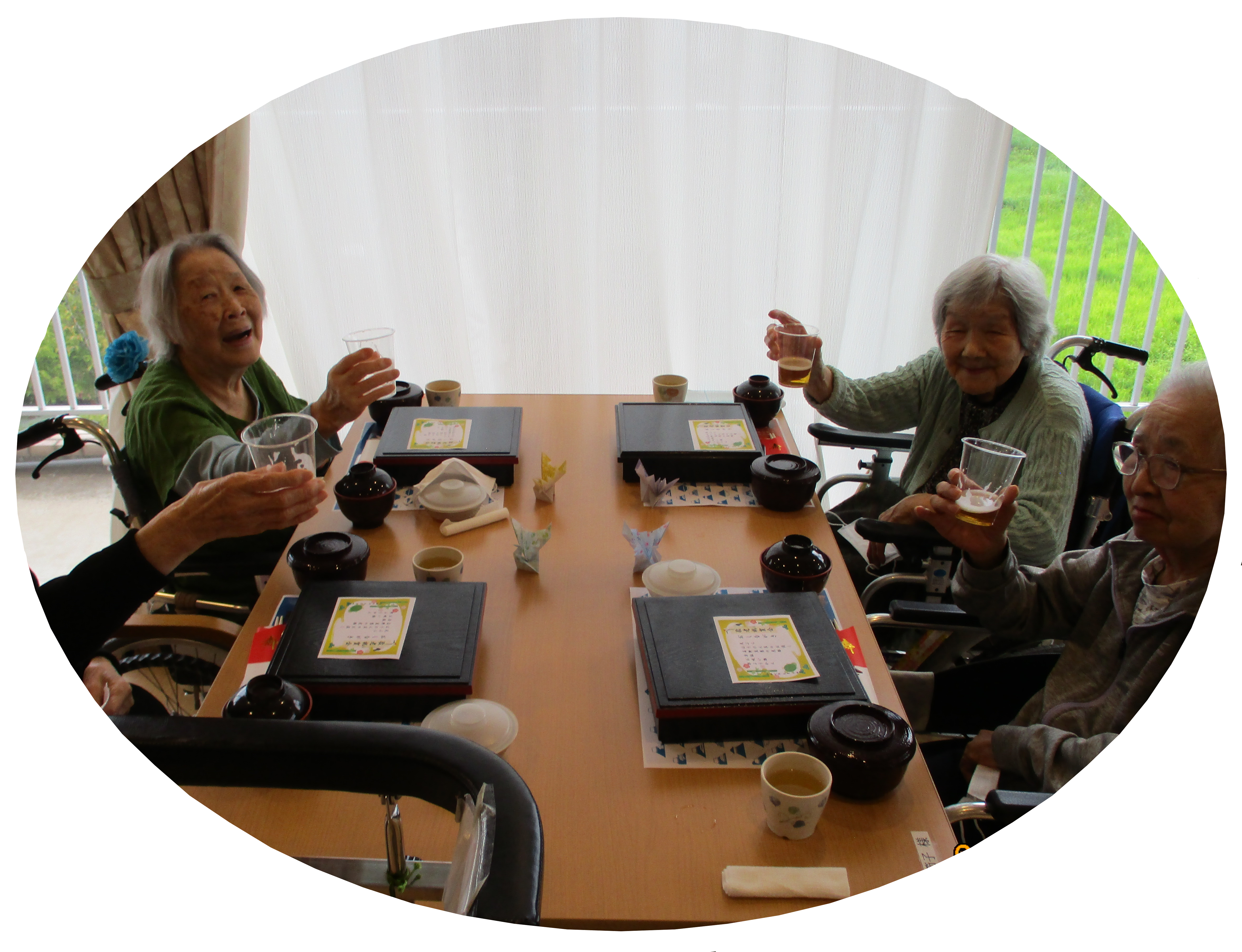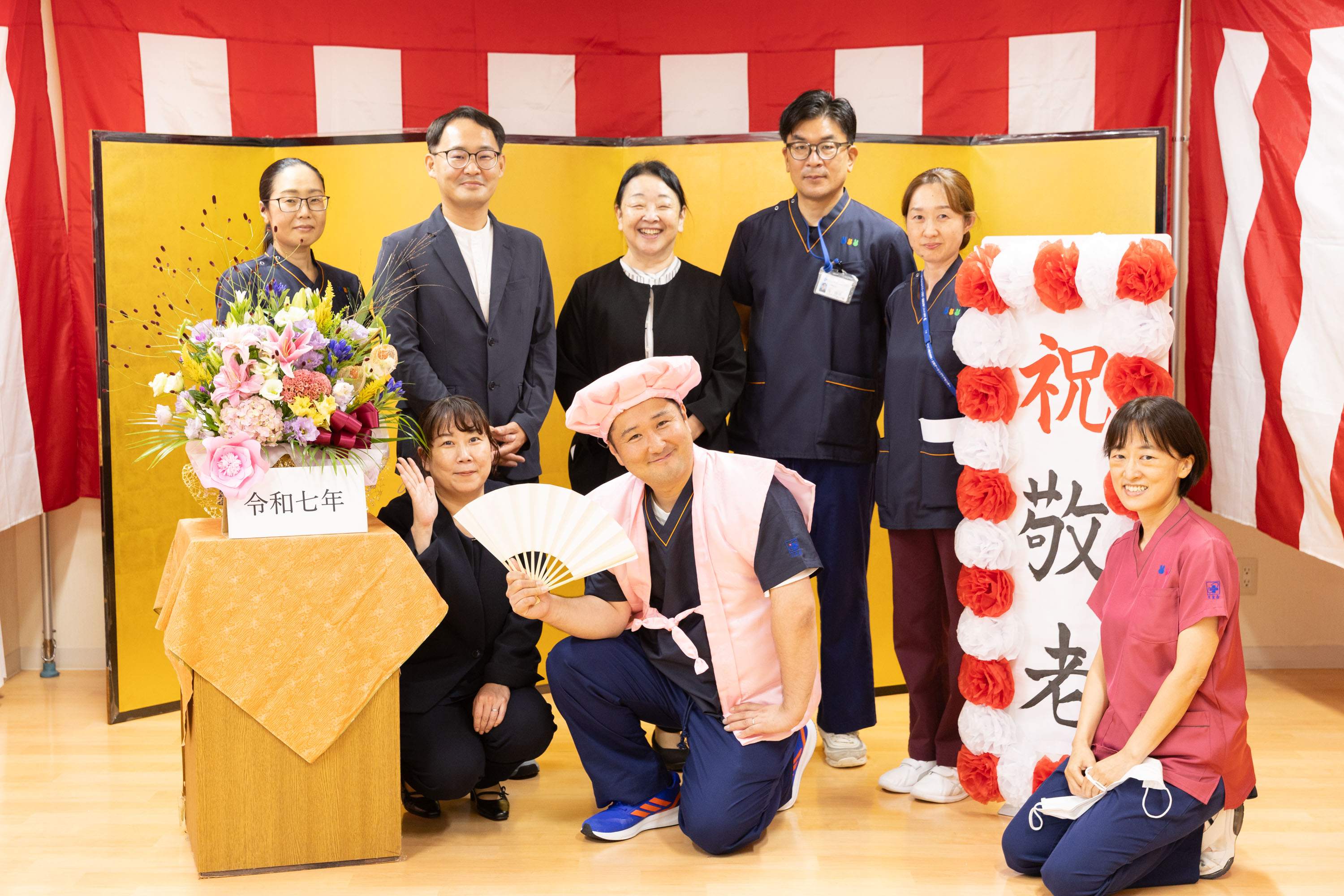 9/14(日)、老健では、敬老会が行われました。節目の方は、ちゃんちゃんこを着て頂き、記念撮影をしました。ご家族様も撮影に参加して頂き、ご家族様と声を掛け合うことで、表情が柔らかくなりとても良い写真が撮れました。