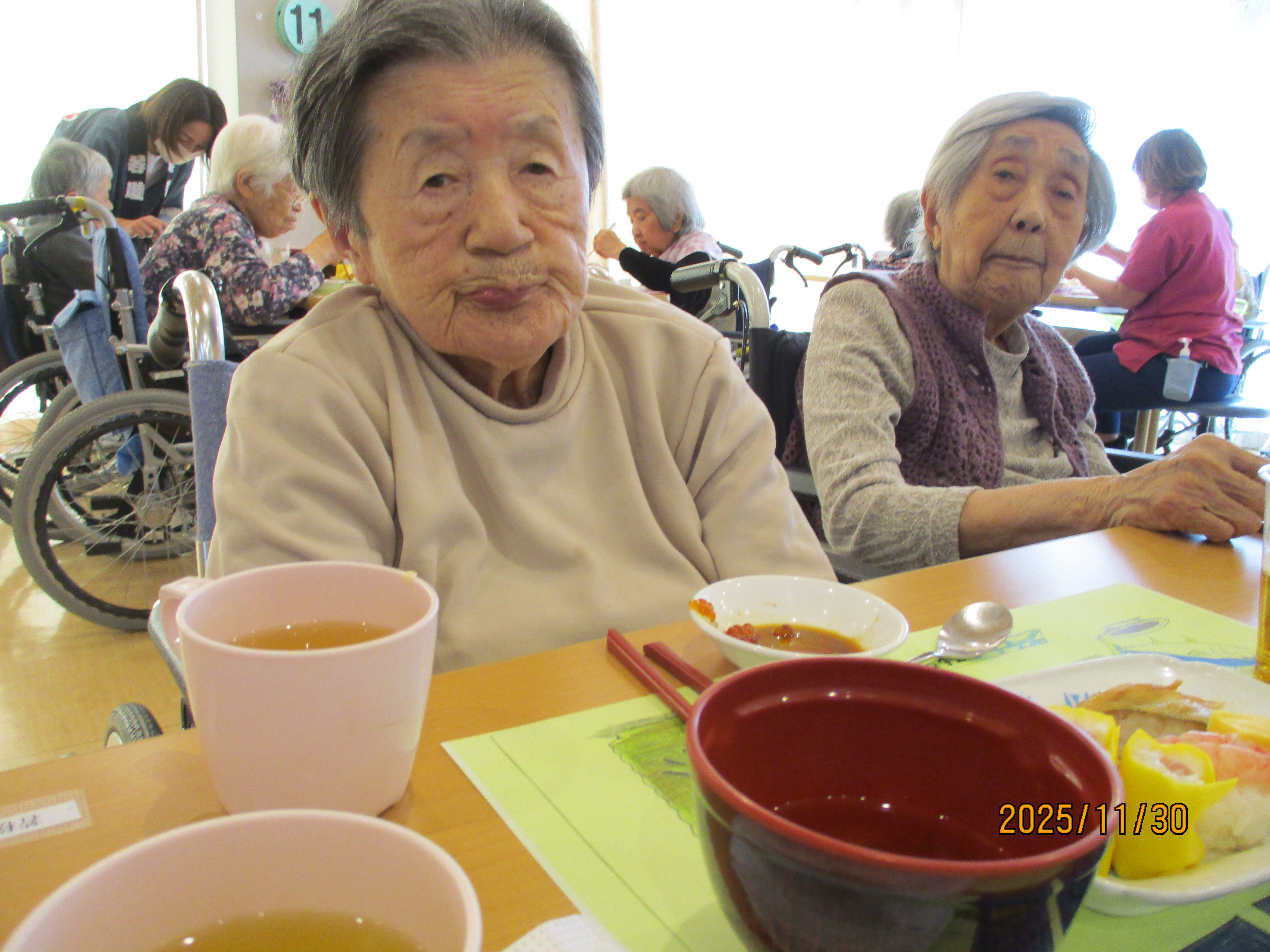 11月30日(日)の昼食時に、寿司バイキングを開催しました。