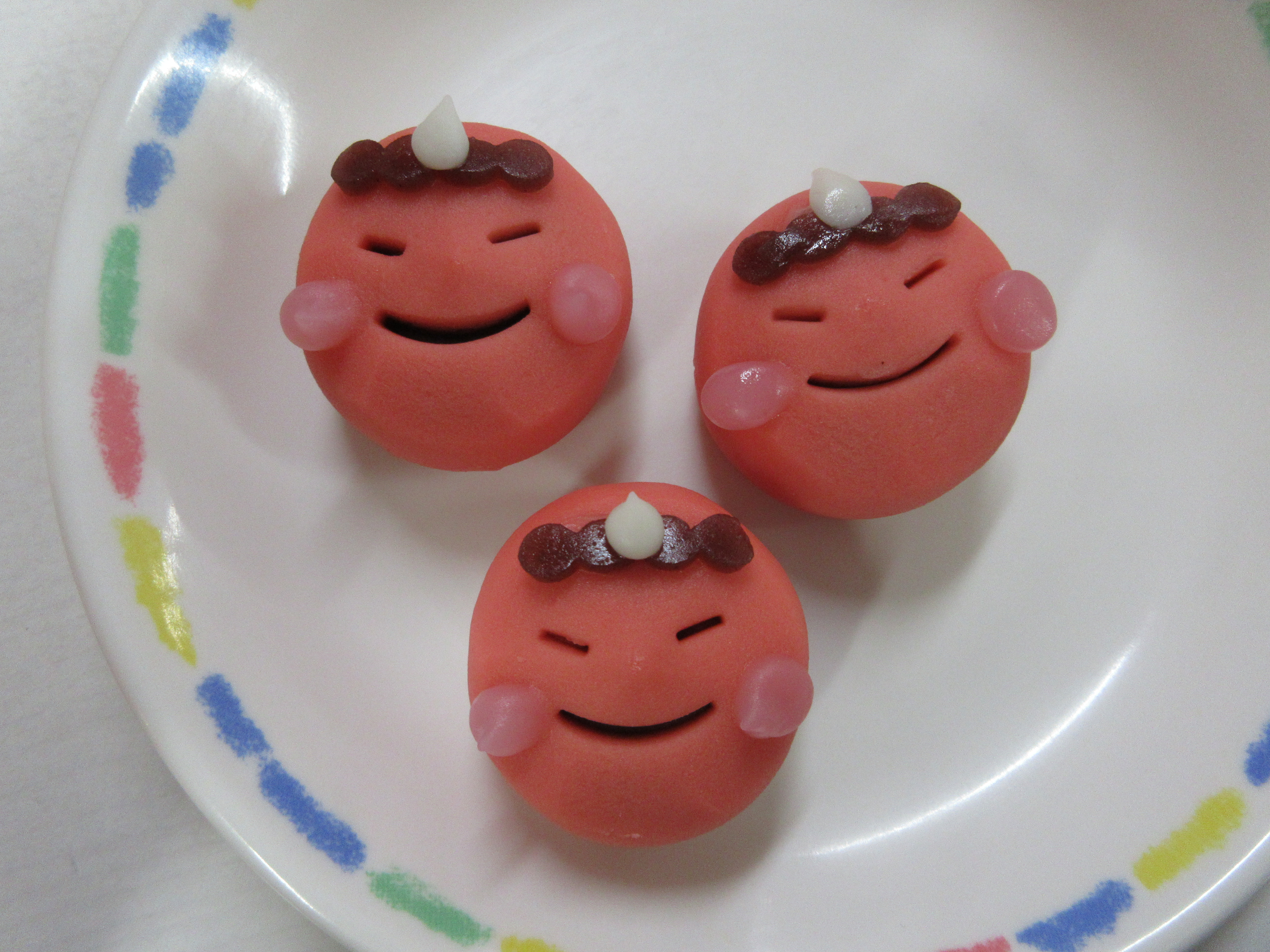最後は、みんなでおやつの「赤鬼の練り切り」や「鬼ゼリー」、「甘納豆」をいただきながら、お互いの頑張りをねぎらい合いました。