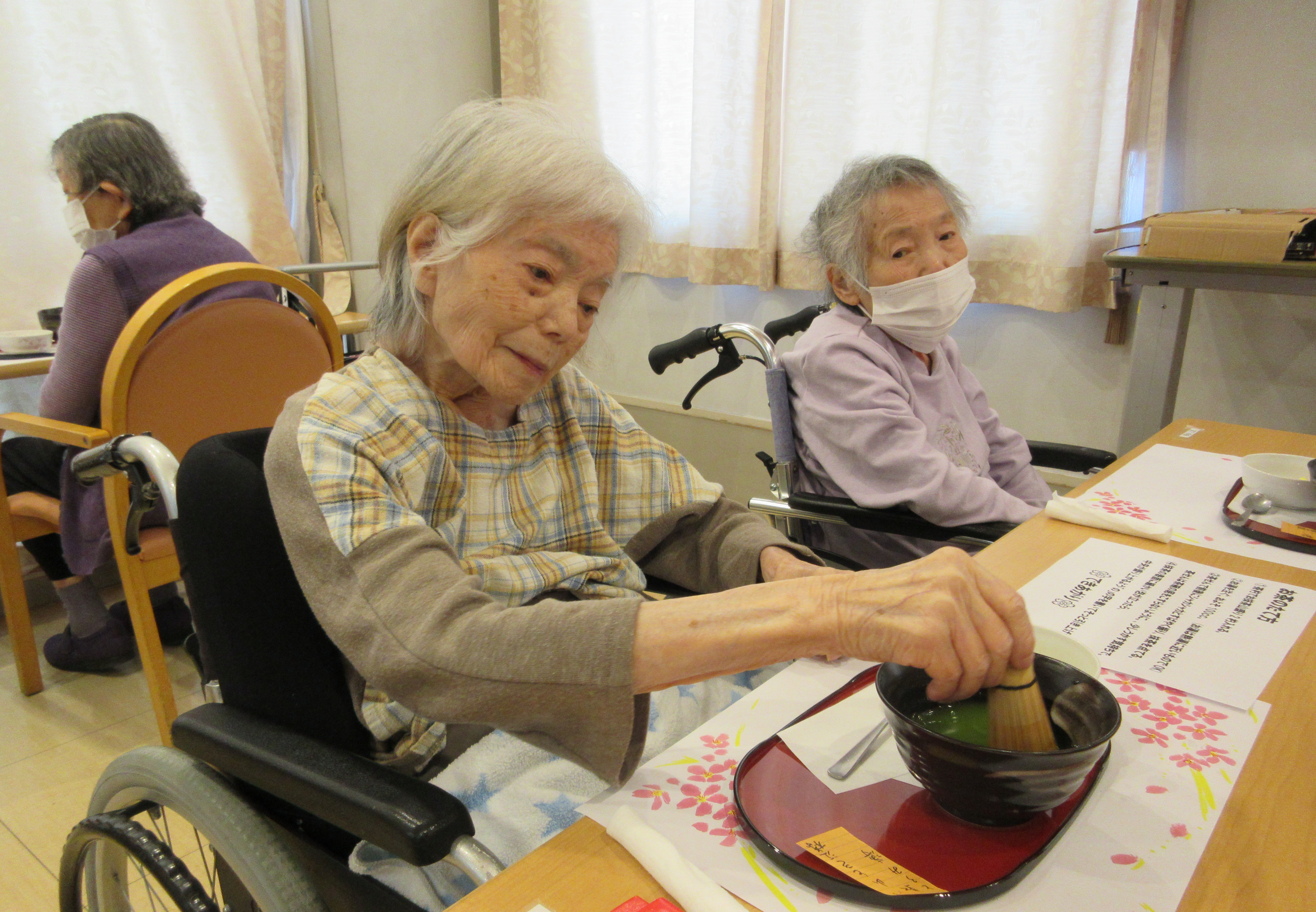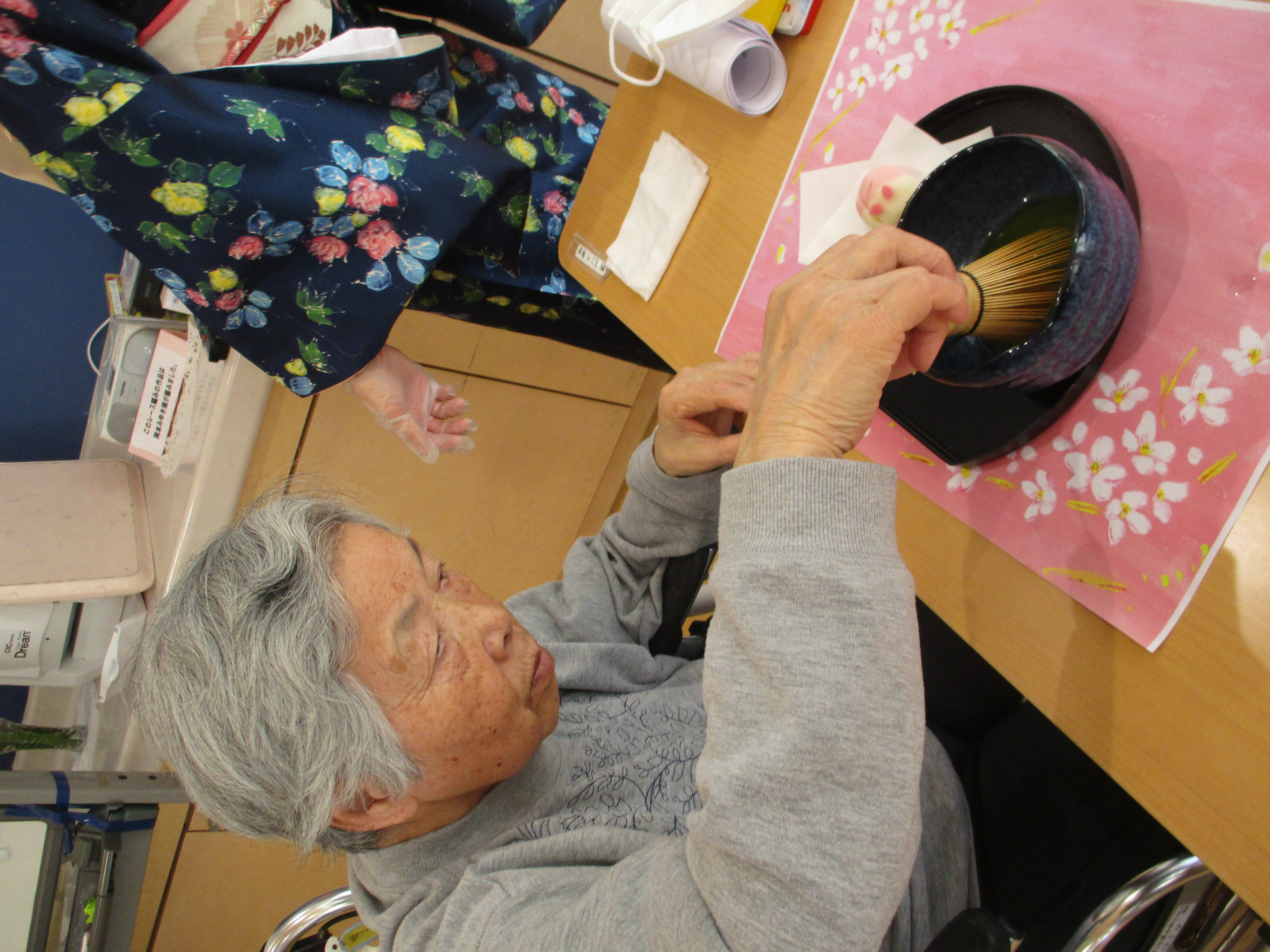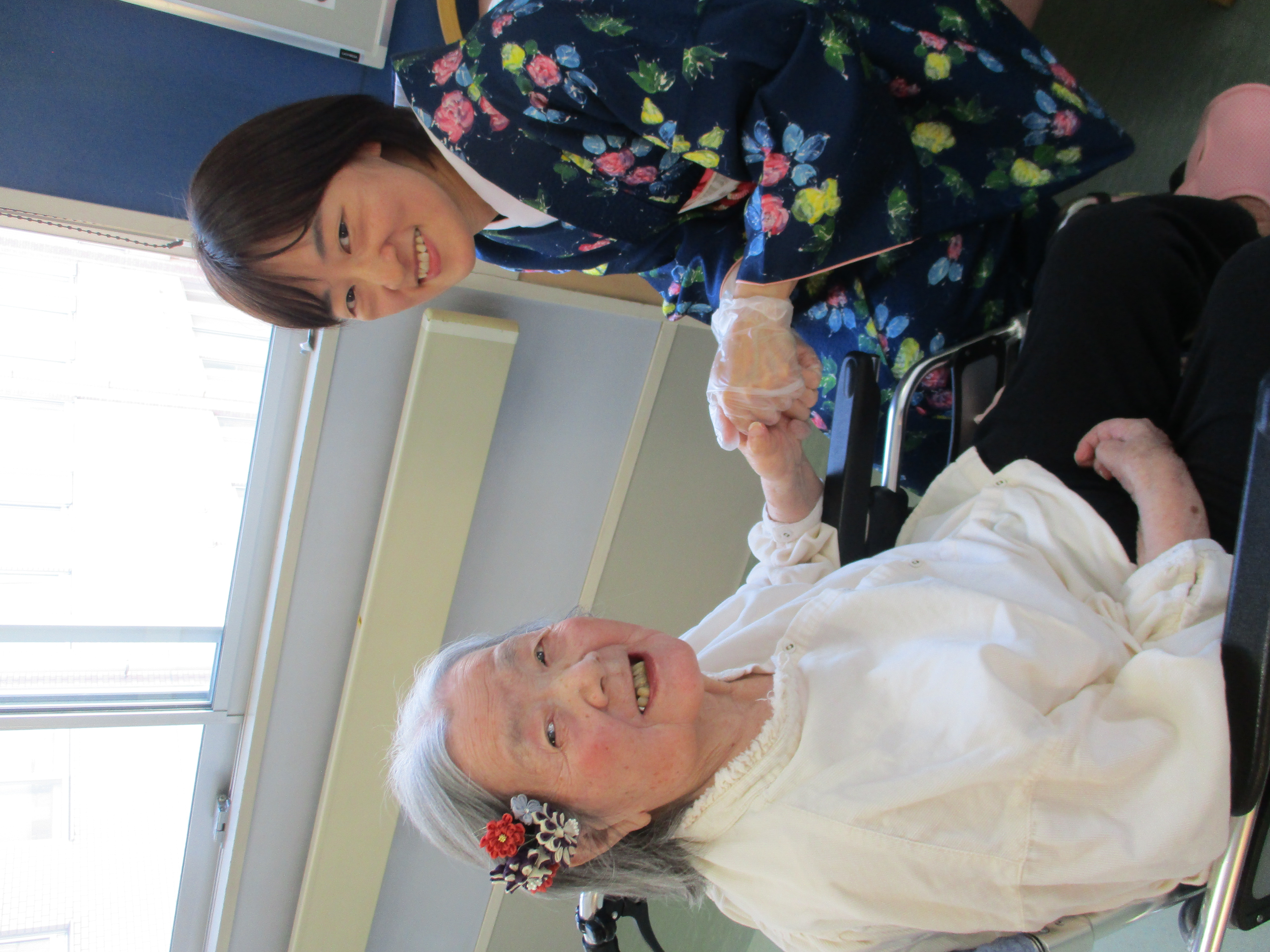 当日は職員が着物を着て参加し、「きれいね」と笑顔で声をかけてくださる場面も多く見られました。記念に一緒に写真を撮られる方もいらっしゃり、和やかな雰囲気に包まれていました。