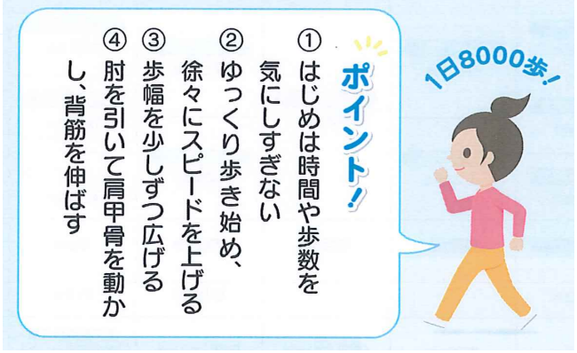 ウォーキングは目安として1日に8000歩、時間は20分程度で普段歩くスピードよりもやや速いスピードで行うと効果的です。生活習慣病を予防し、健康的な毎日を過ごせるように、ウォーキングの習慣を取り入れてみませんか。