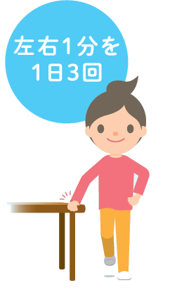 ① 片脚立ち:左右1分間1日3回行います。机などを持っても構いません。転倒には十分に注意しましょう。